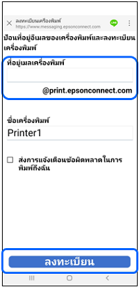 กรอกที่อยู่อีเมลของเครื่องพิมพ์และเลือก [การลงทะเบียน].