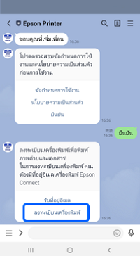 เปิดหน้าการแชทของเครื่องพิมพ์ Epson แล้วเลือก [ลงทะเบียนเครื่องพิมพ์].