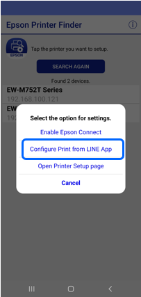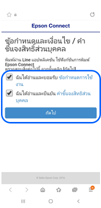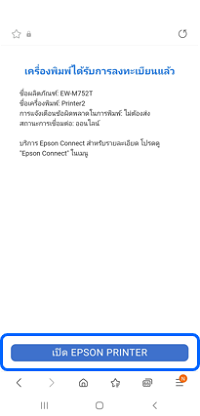 หากเพิ่มเครื่องพิมพ์ Epson เป็นเพื่อนแล้ว หน้าจอนี้จะไม่ปรากฏขึ้น.
